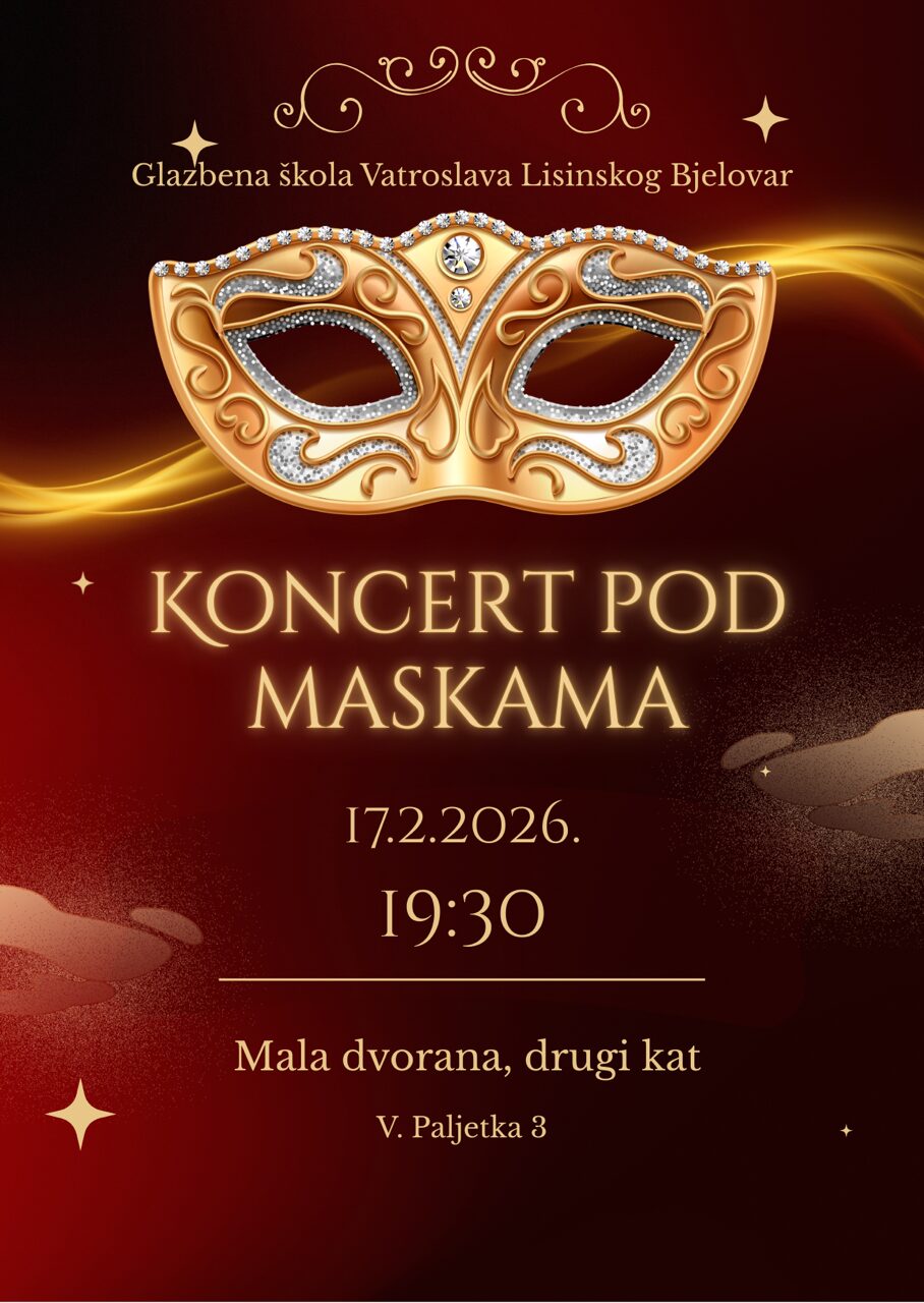 U idući utorak, 17. 2. 2026., u 19:30 sati, u Maloj dvorani glazbene škole, održat će se Koncert pod maskama. Mačke, miševi, kauboji i razni