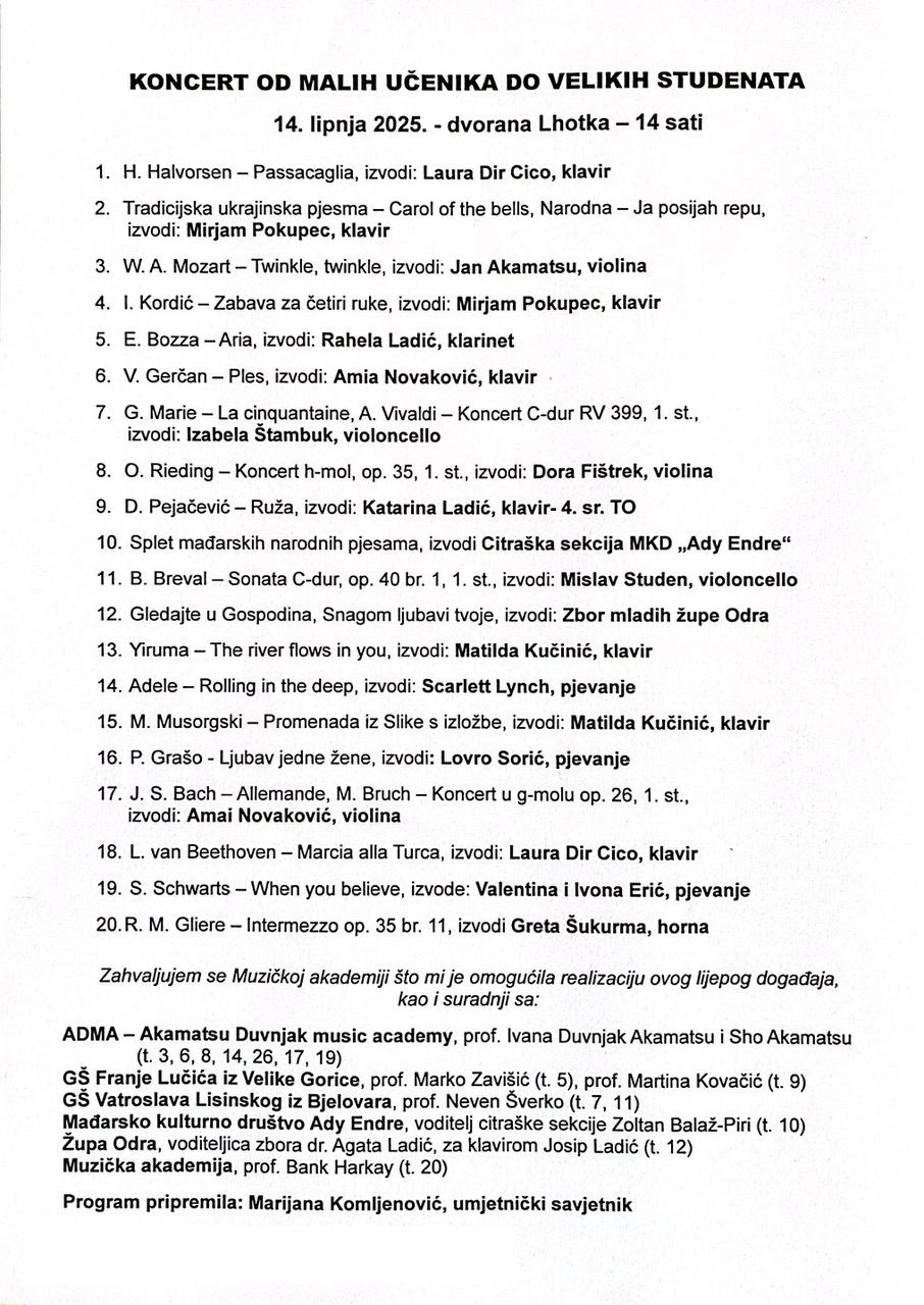 pratnja na klaviru: Marijana Komljenović, umjetnički savjetnik.