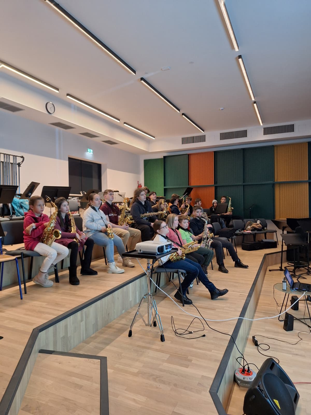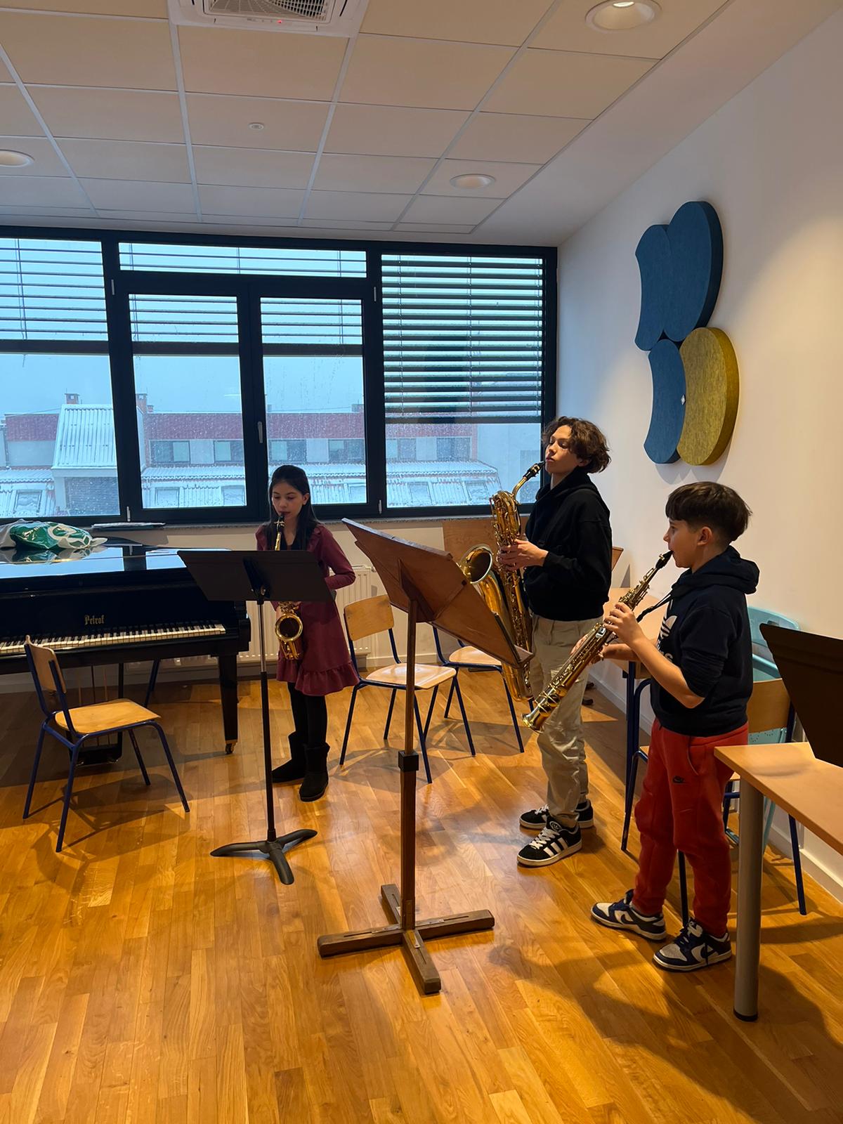 Polaznici su tijekom radionice svirali u različitim komornim sastavima te u velikom ansamblu.